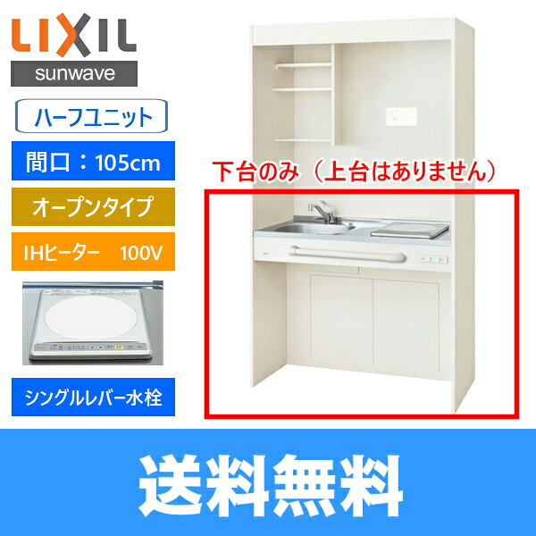 リクシル/サンウェーブ[LIXIL/SUNWAVE]ミニキッチン 右水槽:DMK10HGWD1B100R(アンティックホワイト/一般地仕様) 右水槽:DMK10HGND1B100R(クリエペール/一般地仕様) 左水槽:DMK10HGWD1B100L(アンティックホワイト/一般地仕様) 左水槽:DMK10HGND1B100L(クリエペール/一般地仕様) 寸法:幅1050x奥行500x高さ820.5mm オープンタイプ ハーフユニット 熱源:IHヒーター100V 水栓:シングルレバー水栓 水槽位置を選択してください ※写真は左水槽(L) 寒冷地仕様の場合は備考欄に【寒冷地仕様希望】とご記載ください 排水ジャバラホースは別途となります 換気扇は別途となりますLIXIL SUNWAVE DMK10HGWD1B100 DMK10HGND1B100